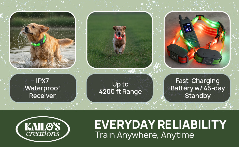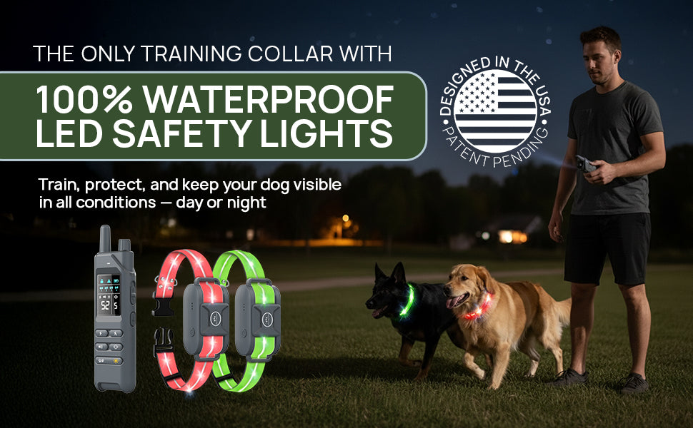 - REVOLUTIONARY 2-IN-1 LED DOG TRAINING COLLAR: Unlike standard collars with just a small receiver light, our dog shock collar with remote combines proven 4 training functions and 360° LED safety lights. Say goodbye to juggling two collars – this all-in-one design replaces both a training collar and an LED visibility collar.